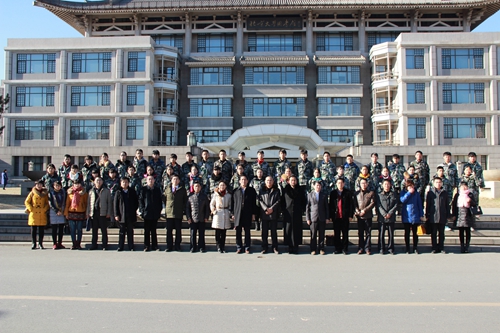 黑龙江省汤原县师生、河南省宜阳县师生分别与全体领导在威尼斯金沙欢乐娱人城图书馆前合影