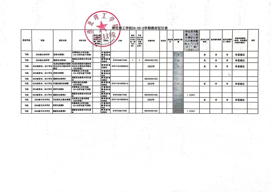 Beat365唯一官方网站2024-2025学年第二学期教材选用情况公示