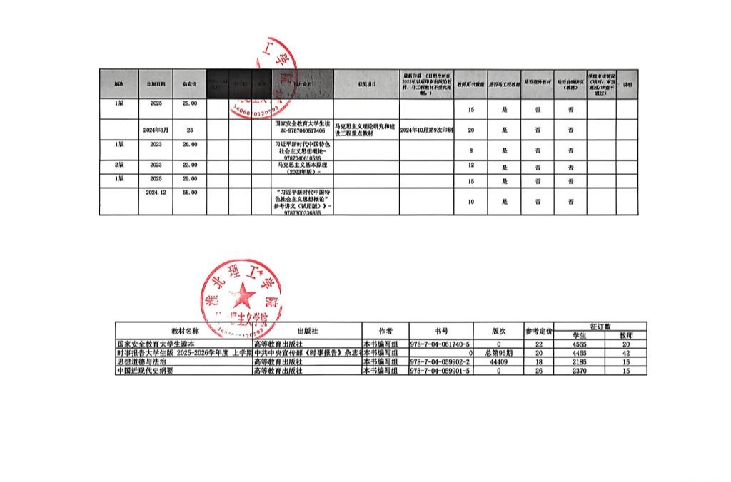 Beat365唯一官方网站2025-2026学年第一学期教材选用情况公示