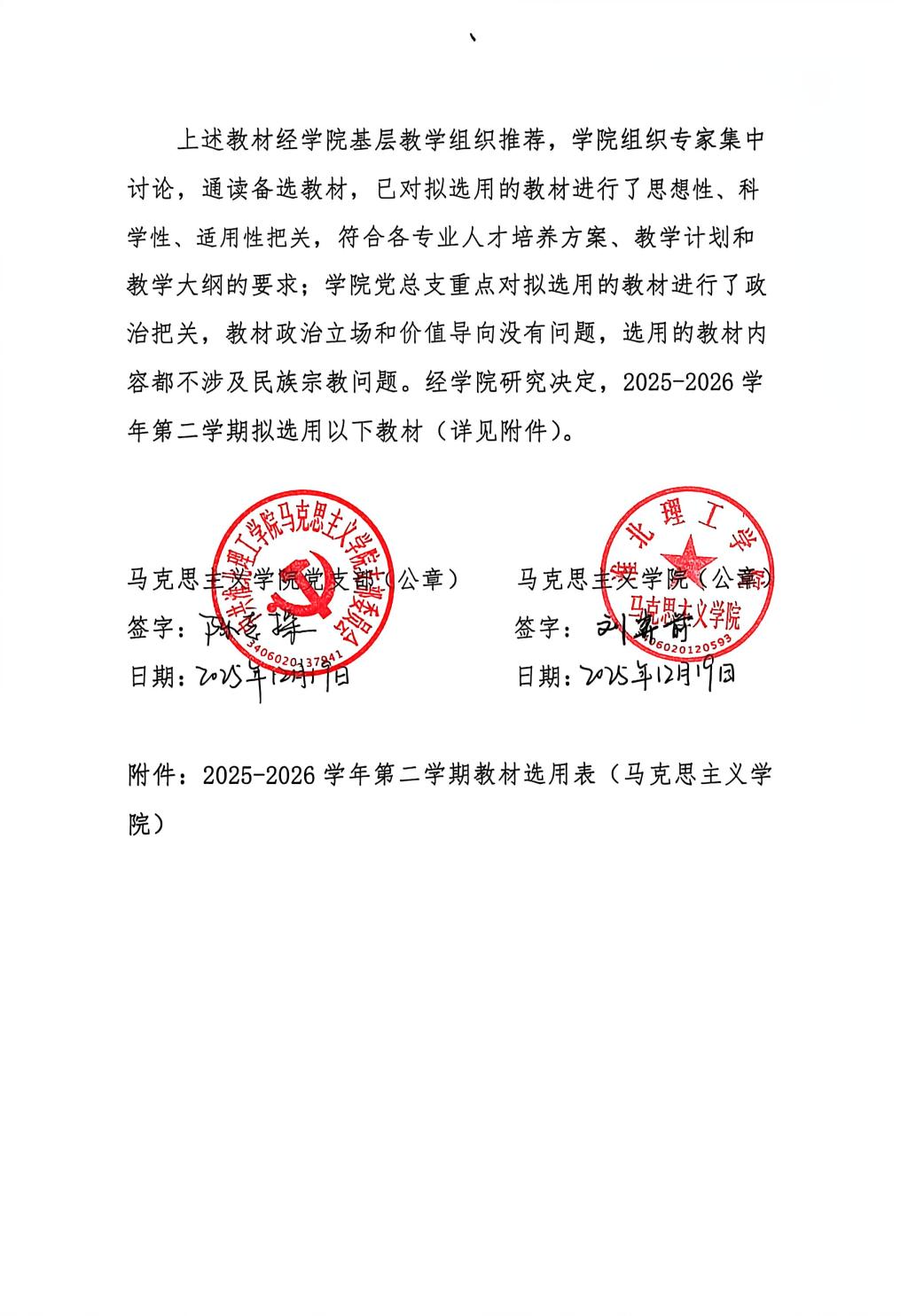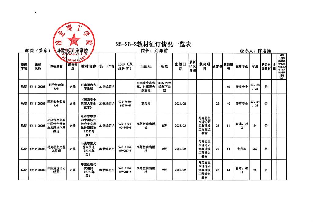 Beat365唯一官方网站2025-2026学年第二学期教材选用情况公示