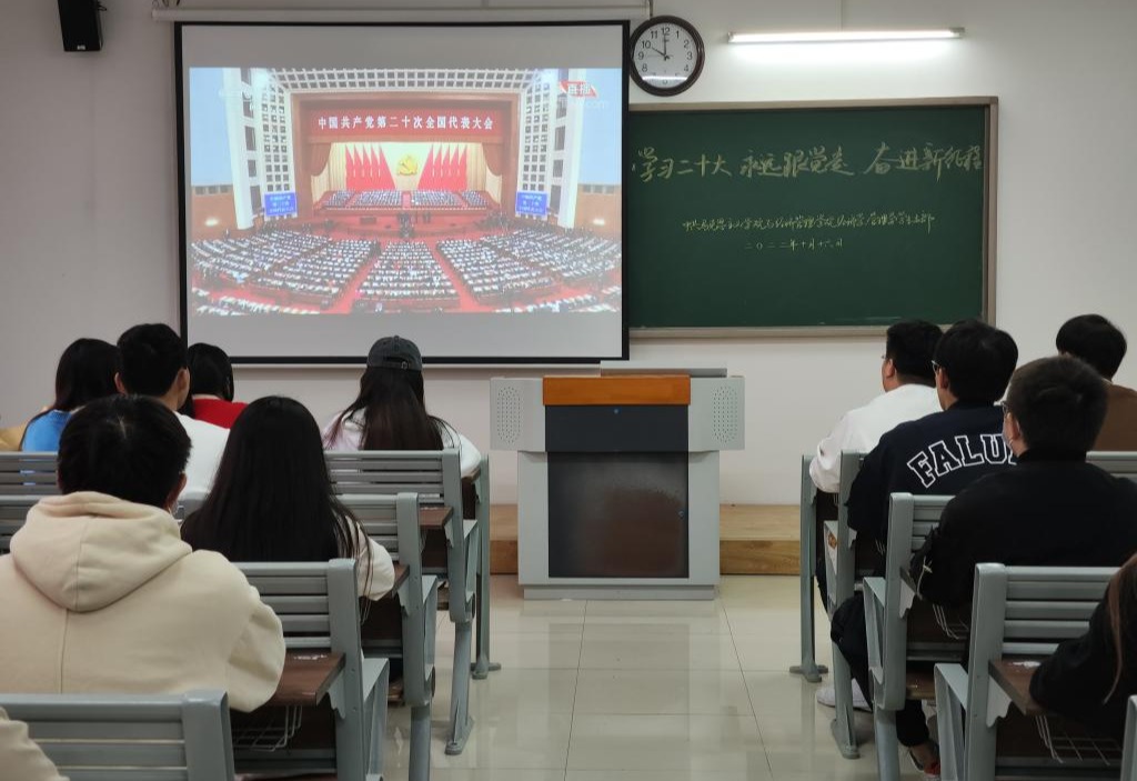 10月16日上午10时,万众瞩目的中国共产党第二十次全国代表大会在北京隆重召开,习近平总书记代表十九届中央委员会向大会作报告,为深入学习宣传贯彻党的二十大精神,Beat365唯一官方网站和经济与管理学院党总支第一时间组织师生党员干部在第一教学楼214、215教室集中观看大会现场直播。