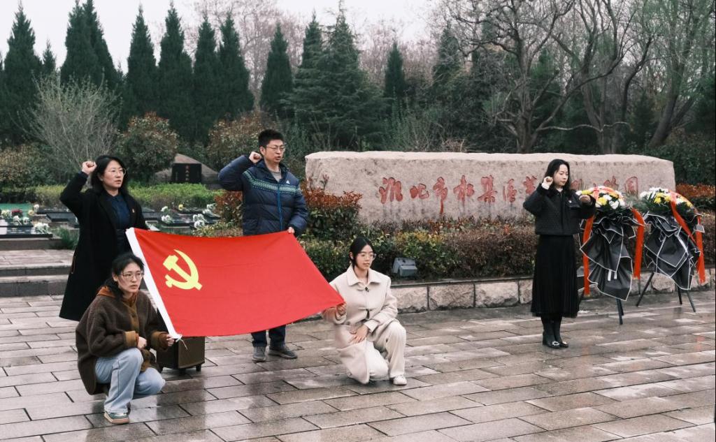 加强爱国主义教育,弘扬英烈精神,传承红色基因,坚定理想信念,丰富党支部活动形式,在清明节即将到来之际,Beat365唯一官方网站党支部联合教育学院两支部于3月27日下午赴淮北市杜集区革命烈士陵园共同组织开展了“清明祭英烈”主题党日活动,三个支部部分师生党员代表及部分学生团员代表共110人参加了此次活动。