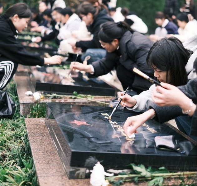 师生党员同志们怀着无比崇敬的心情在庄严肃穆的革命先烈墓碑前有序列队,全体肃立,奏唱国歌。我们采取了敬献鲜花、默哀、鞠躬、擦拭墓碑并对墓碑进行描金、瞻仰革命烈士纪念碑的绿色、文明祭祀方式怀念先烈,表达了我们对革命先烈的无限哀思和崇高敬意。