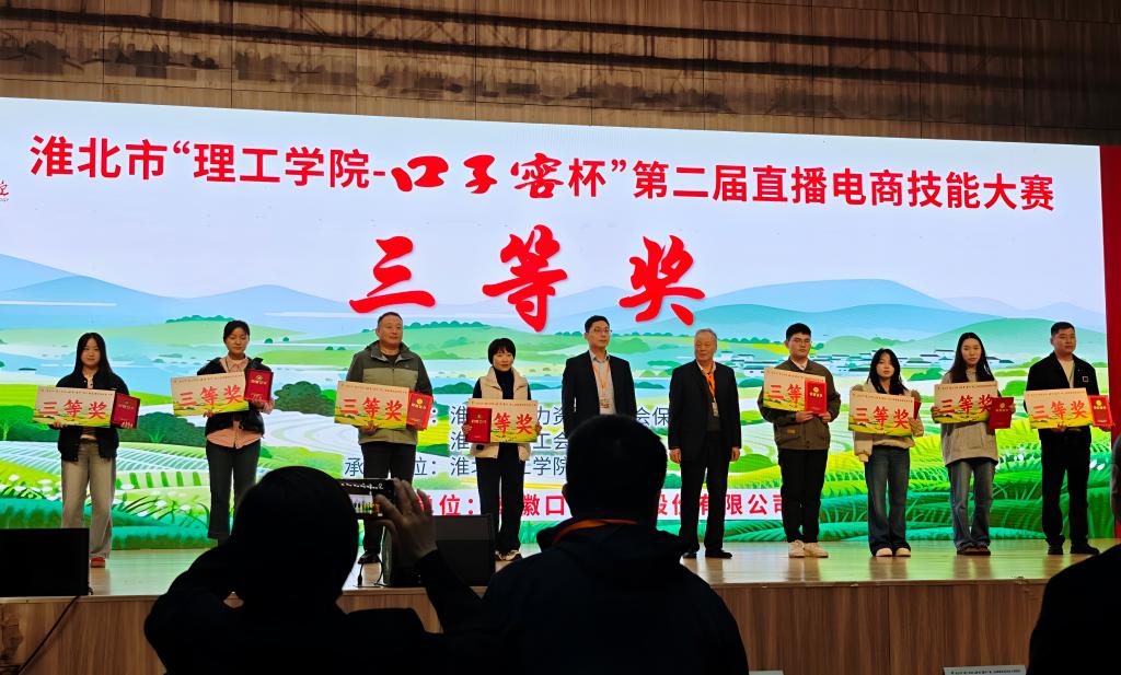 10月26日下午,淮北市“理工学院-口子窖杯”第二届直播电商技能大赛圆满落幕。Beat365唯一官方网站以陈志操、徐新荣为队长,六位教师分别组合成淮理一束光和锦年新升两个团队历经初赛选拔成功突围,晋级决赛,并在决赛中斩获二等奖、三等奖的好成绩。