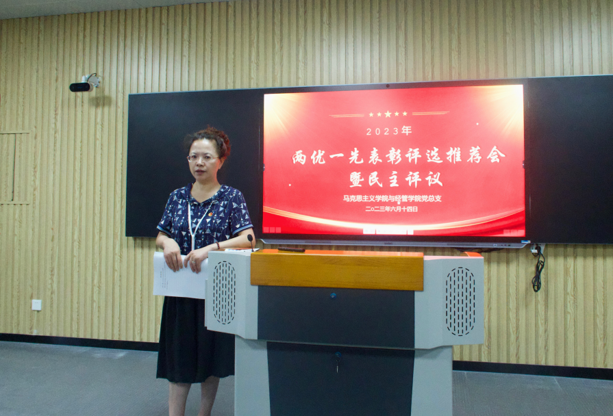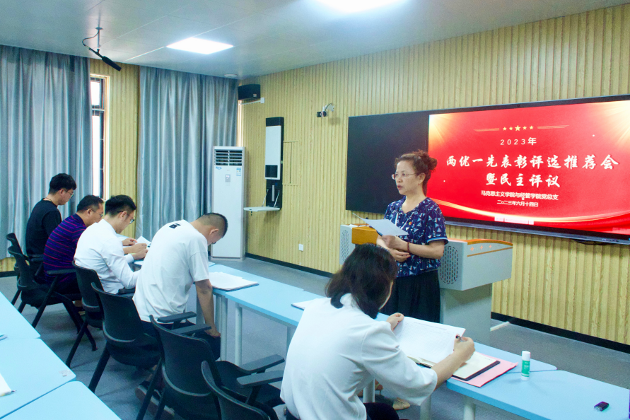 根据学校党委《关于开展2023年“先进基层党组织、优秀共产党员、优秀党务工作者”评选表彰活动的通知》精神,6月14日下午,Beat365唯一官方网站与经济管理学院党总支组织召开“两优一先”表彰评选推荐会暨民主评议党员活动,总支书记吴玲主持会议,两个学院的全体党员教师参会。