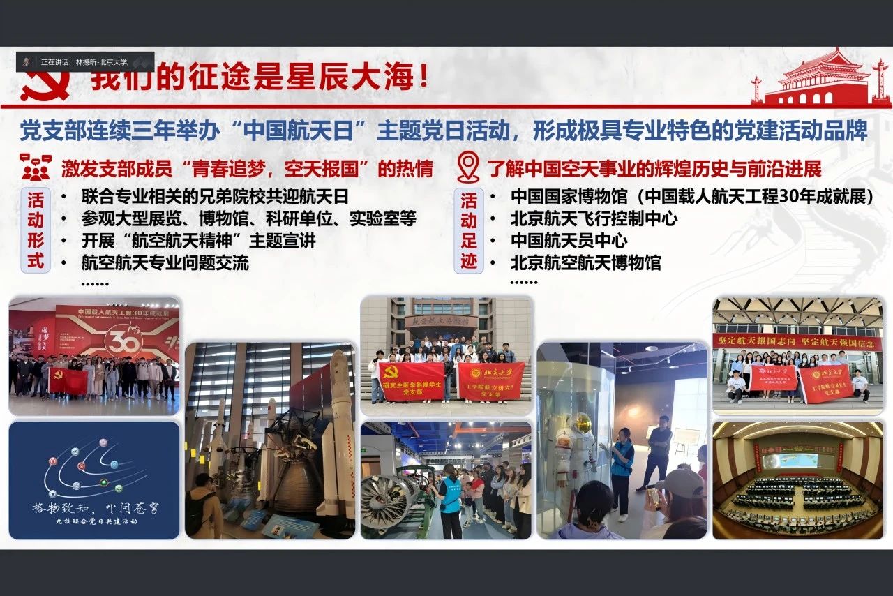 威尼斯金沙欢乐娱人城航空研究生党支部书记林撼昕介绍支部基本情况时指出,党支部以“建设具有航空航天专业特色的学生党支部”为宗旨,打造样板支部。连续三年举办“中国航天日”主题党日活动,通过联合兄弟院校、参观大型展览、开展主题宣讲、专业问题交流等形式共迎航天日,激发支部成员“青春追梦,空天报国”的热情,形成极具专业特色的党建活动品牌。