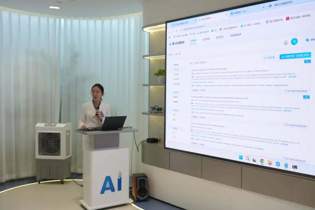 随后,刘彦汝同志向大家详细介绍公司的重要产品——讯飞星火大模型。该模型具备强大的语言理解和跨领域知识运用能力,支持复杂任务的对话处理与知识管理,并能通过海量数据持续学习和优化,进一步体现了人工智能大模型的强大认知学习能力。