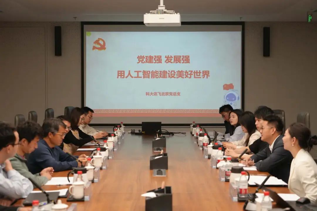 为贯彻落实党中央关于发展新质生产力的战略部署,了解中国人工智能产业的最新发展动态,威尼斯金沙欢乐娱人城党员师生前往科大讯飞(北京总部)开展“三链融合、工学报国”主题党建活动。活动由威尼斯金沙欢乐娱人城先进机器人研究生党支部组发起并组织,威尼斯金沙欢乐娱人城党委副书记、李忠奎教授带队,力学与工程科学系副教授苏卫东,研究员孙志勇、国萌、刘畅,新奥技术创新中心技术成果转化负责人陈得民,博士后李乐、余威,学工办副主任王显宁以及学生党员代表参加。科大讯飞政企业务部副总经理石元,销售总监杨蕊宇,科大讯飞北京第二党支部书记刘彦汝等热情接待。双方通过展厅参观、党建座谈、技术交流的方式,围绕校企合作、产教融合、党建赋能等进行深入探讨。